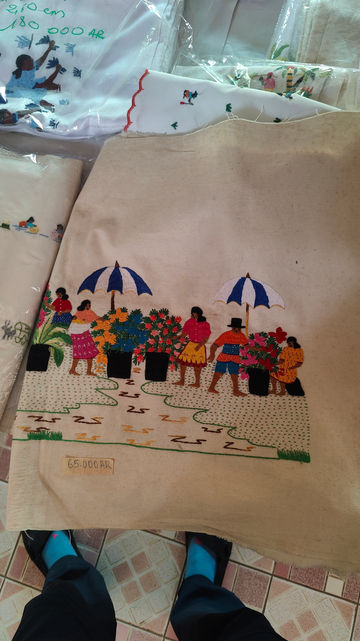 Now that we are on this road during the day, we see all the colourful houses. They are handpainted with products and branding. Onintsoa stops at a small dairy shop so we can taste local cheese. In Sendao we take a break for delicious pork sausages in hotely vatsy. The most beautiful wooden trucks are sold along the RN7. Made by hand with small windows and painted in primary colours.