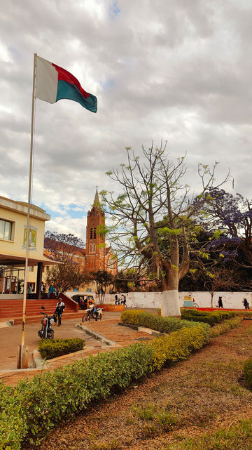 A crowd of colourful Betsileo people catches our attention. Sunday mass has ended and people gather in front of the church. We meet Victorine. She used to be a French teacher in the village. She would like to send us a letter and we exchange addresses. She uses the opportunity to hitch a ride with us to her home.